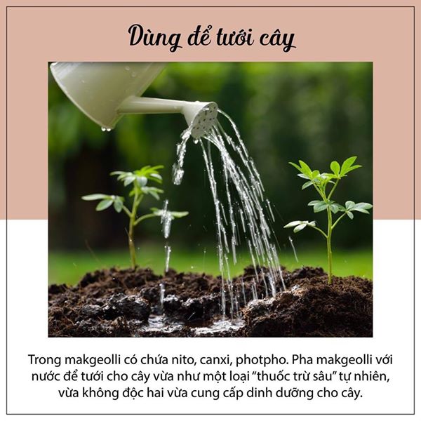 Rượu makgeolli đã quá hạn dành cho cây trồng. Làm thành phân bón để bón cho cây trồng. Makgeolli được lên men từ gạo đúng không? Nhờ những thành phần này mà trong rượu có dinh dưỡng và enzyme đa dạng. Khi bón phân đổ nước gấp 3 lần lượng rượu để pha loãng, sau đó tưới vào phần rễ cây là được.